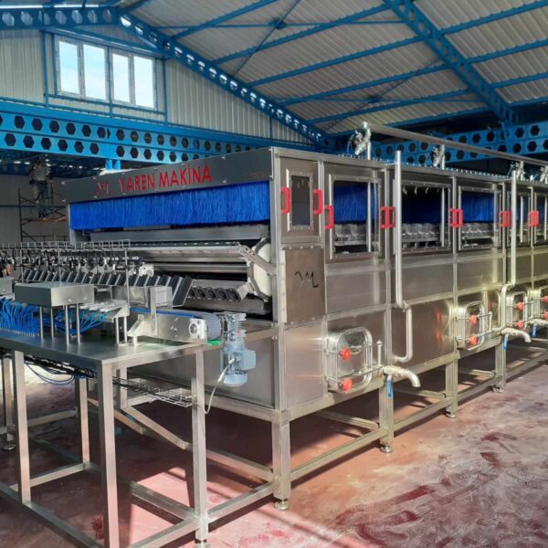Cam şişe yıkama makinesi, bayilerden geri gelen şişelerin hijyenik olarak temizliğini yapan makinedir. Yüksek hijyen ve performans sağlayan cam şişe yıkama makinesi yüksek oranda maliyet anlamında düşüş sağlamaktadır.