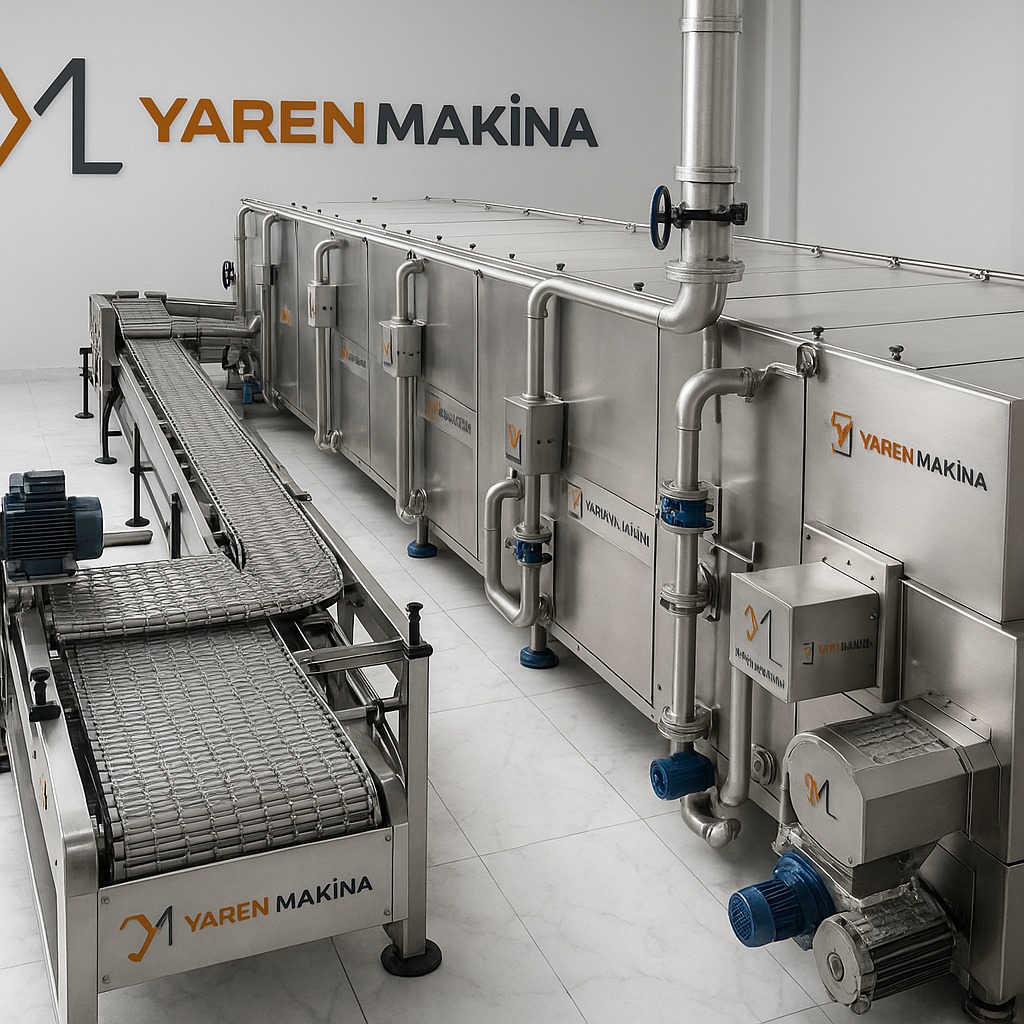 CIP (Clean-in-Place) system integration is a standard part of Yaren Makina solutions. The tunnel can be automatically washed with external or integrated CIP units; detergent, hot water, and rinsing phases are prescribed via the PLC. Proper CIP management ensures a low microbial load, prevents biofilm formation, and eliminates the risk of cross-contamination between products.